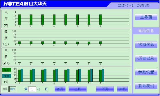 華天HTBM蓄電池在線監(jiān)測(cè)系統(tǒng)由集中監(jiān)控單元、蓄電池分布采集單元和上位機(jī)監(jiān)控平臺(tái)(選配)構(gòu)成。HTBM蓄電池在線監(jiān)測(cè)系統(tǒng)采用分布式結(jié)構(gòu),蓄電池分布采集單元安裝在蓄電池側(cè),一個(gè)HTBM蓄電池分布采集單元可對(duì)兩節(jié)蓄電池進(jìn)行電壓、溫度和內(nèi)阻進(jìn)行監(jiān)測(cè),并將測(cè)得的蓄電池電壓、溫度和內(nèi)阻等參數(shù)通過總線上傳至集中監(jiān)控單元。